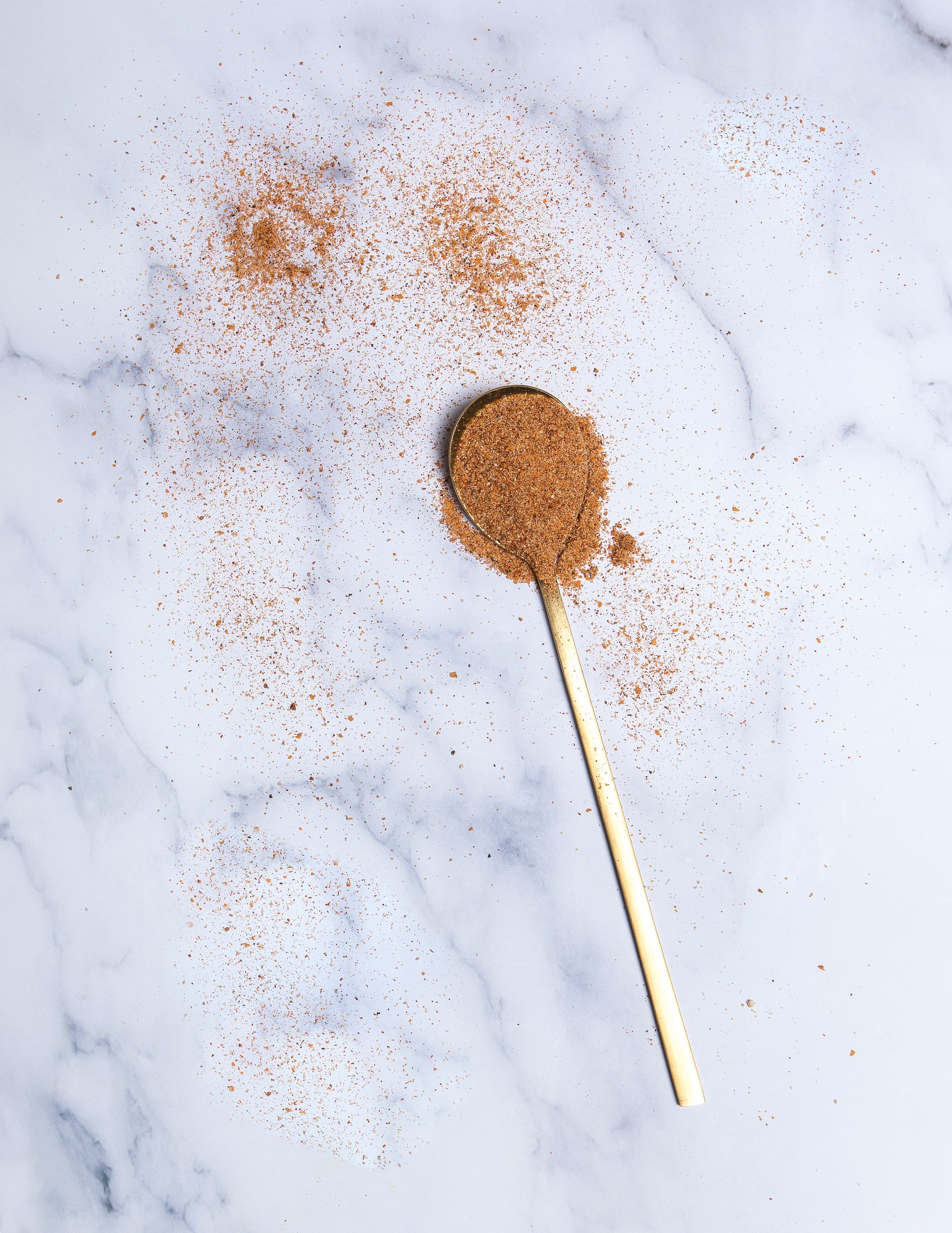 Ingredients: Hand blended with maple sugar, paprika, cracked black pepper, onion powder, garlic powder, mustard powder, cumin, cayenne, and ancho chili powder.